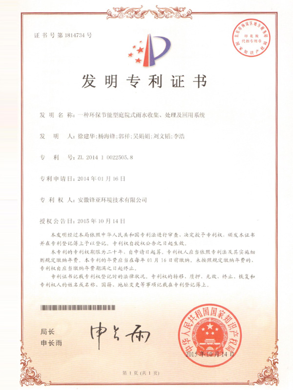 一種環保節能型庭院式雨水收集、處理及回用係統